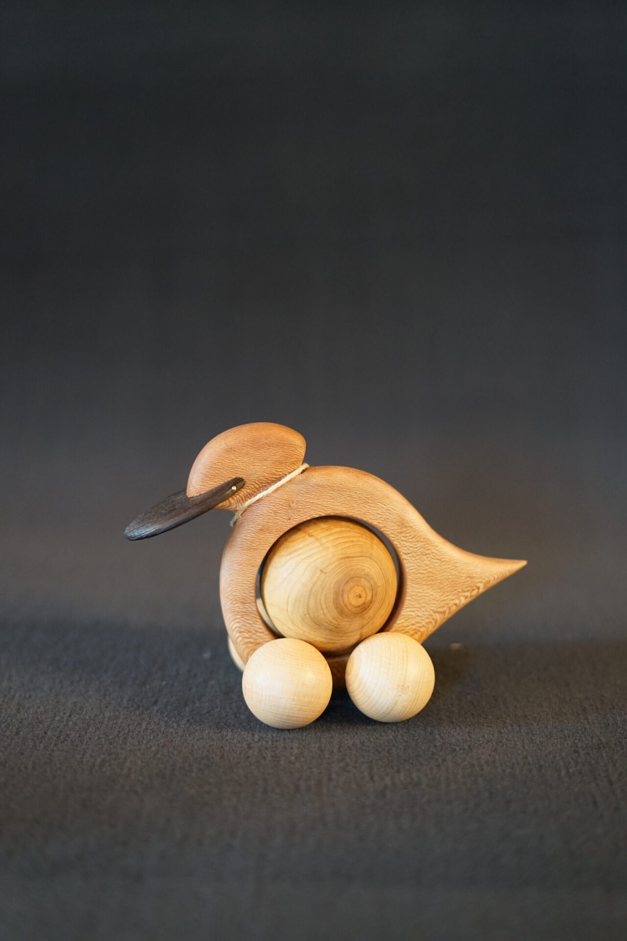 Kugeltiere aus Holz für Sammler Ente “ Gerda“ aus folgenden Holzarten: Schnabel WENGE, Corpus PLATANE, Gr. Kugel TUJA, Räder BUCHE