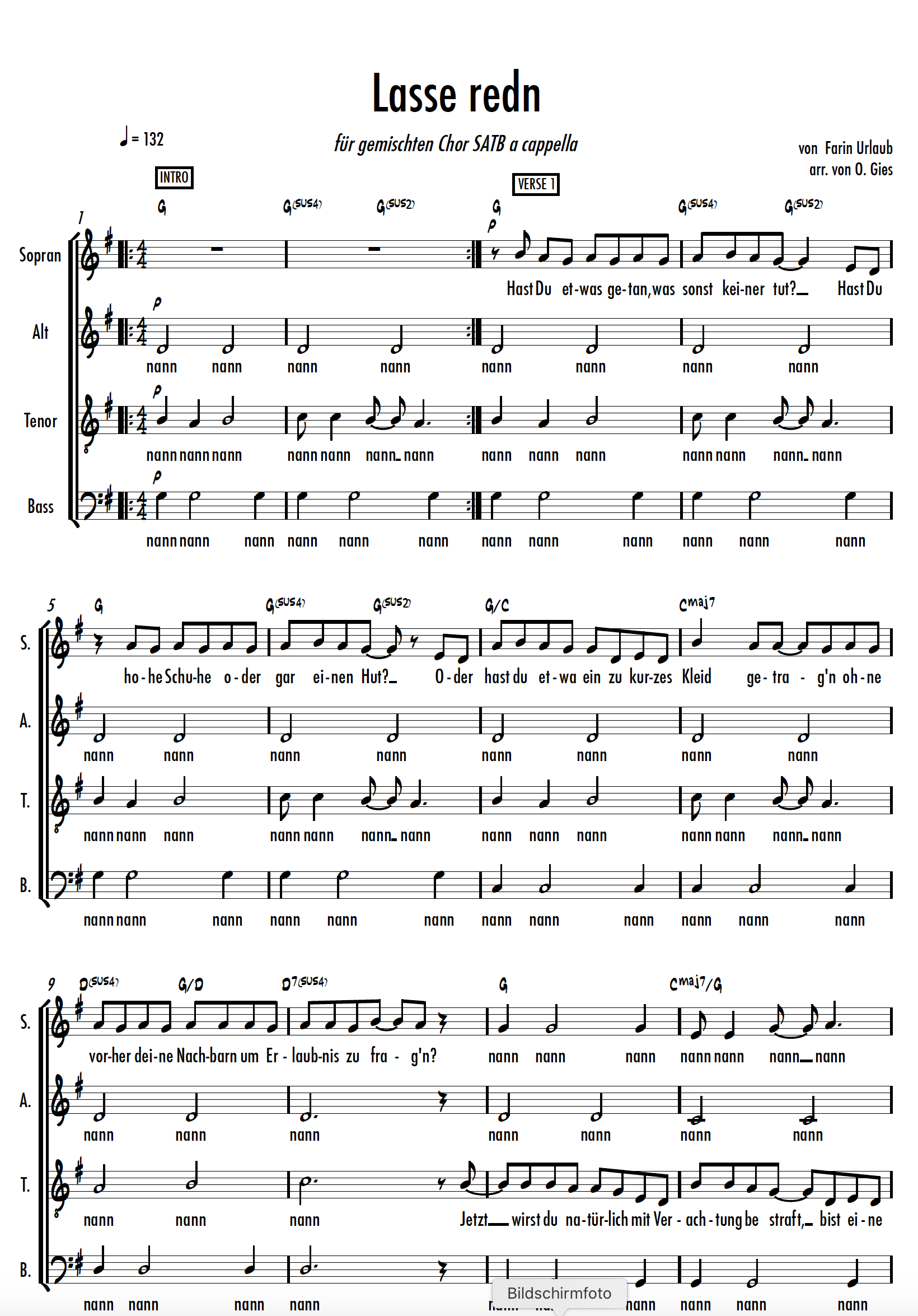 Oliver Gies, der dieses Arrangement für Chor gesetzt hat, schreibt: Die „Beste Band der Welt“ haut auch auf ihre alten Tage noch immer Hits raus. Wie diesen hier, bei dem das spießbürgerliche Tratschen und Lästern thematisiert wird. Die Melodie wandert zügig durch alle Stimmen, wodurch sich die Stimmgruppen wunderbar die Bälle hin- und herwerfen können.